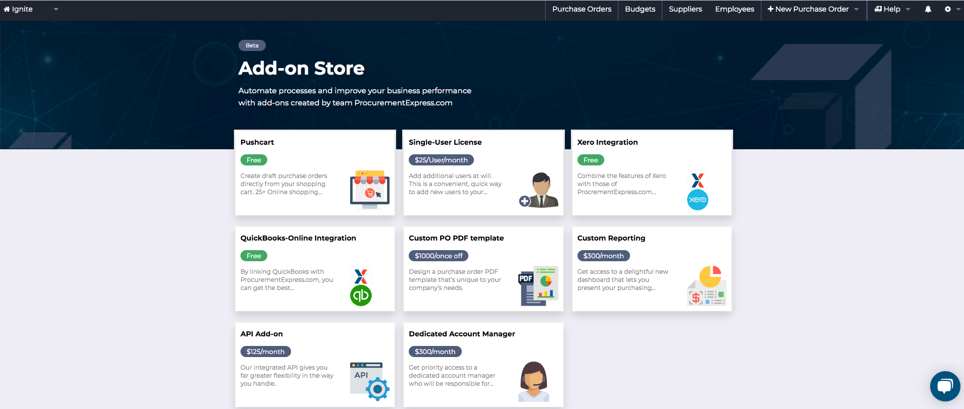 Yes, now Admin Users can add add-ons their own account using our new Add-on marketplace. Now you can have better control over what you pay for since you can select the add-ons your company needs.